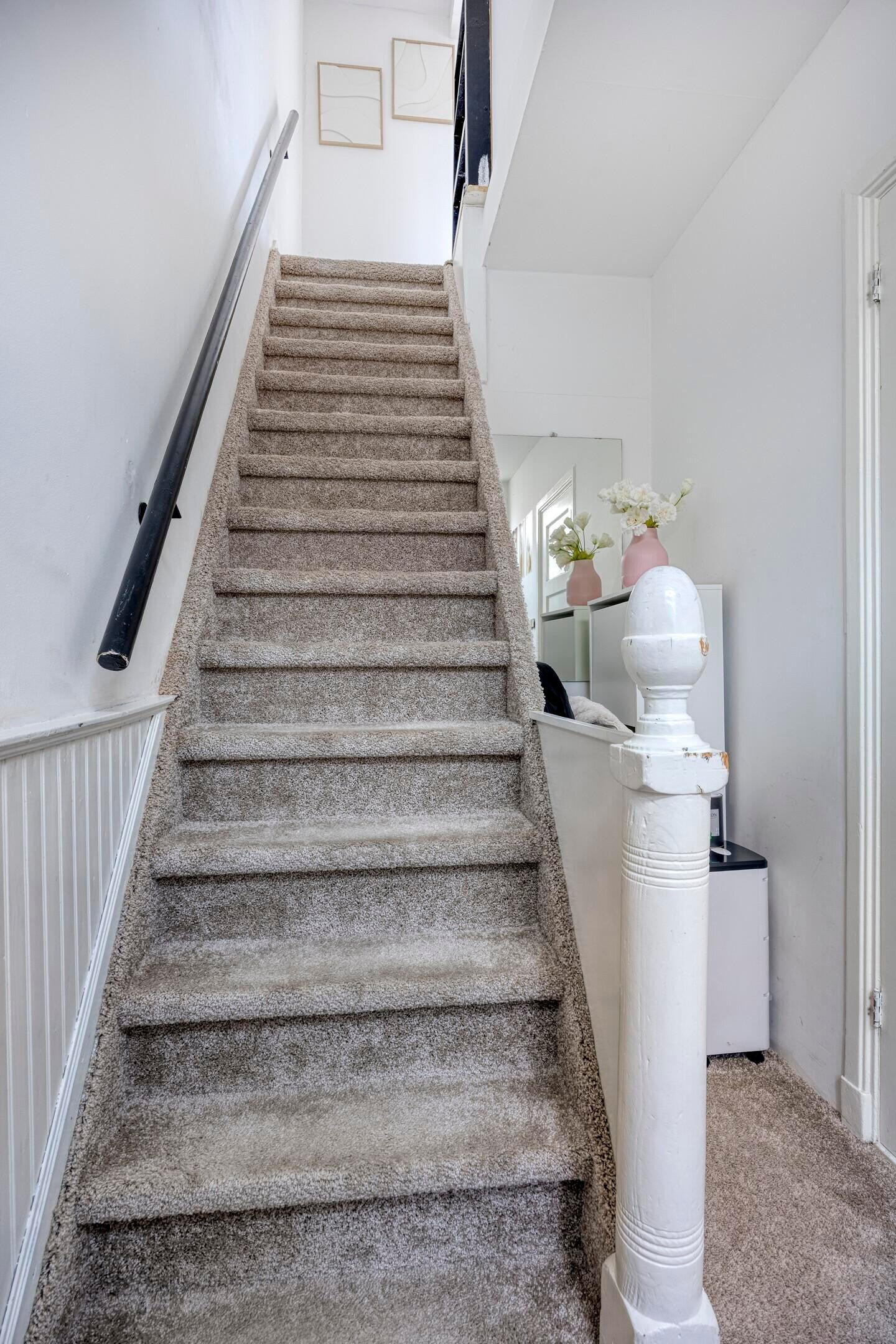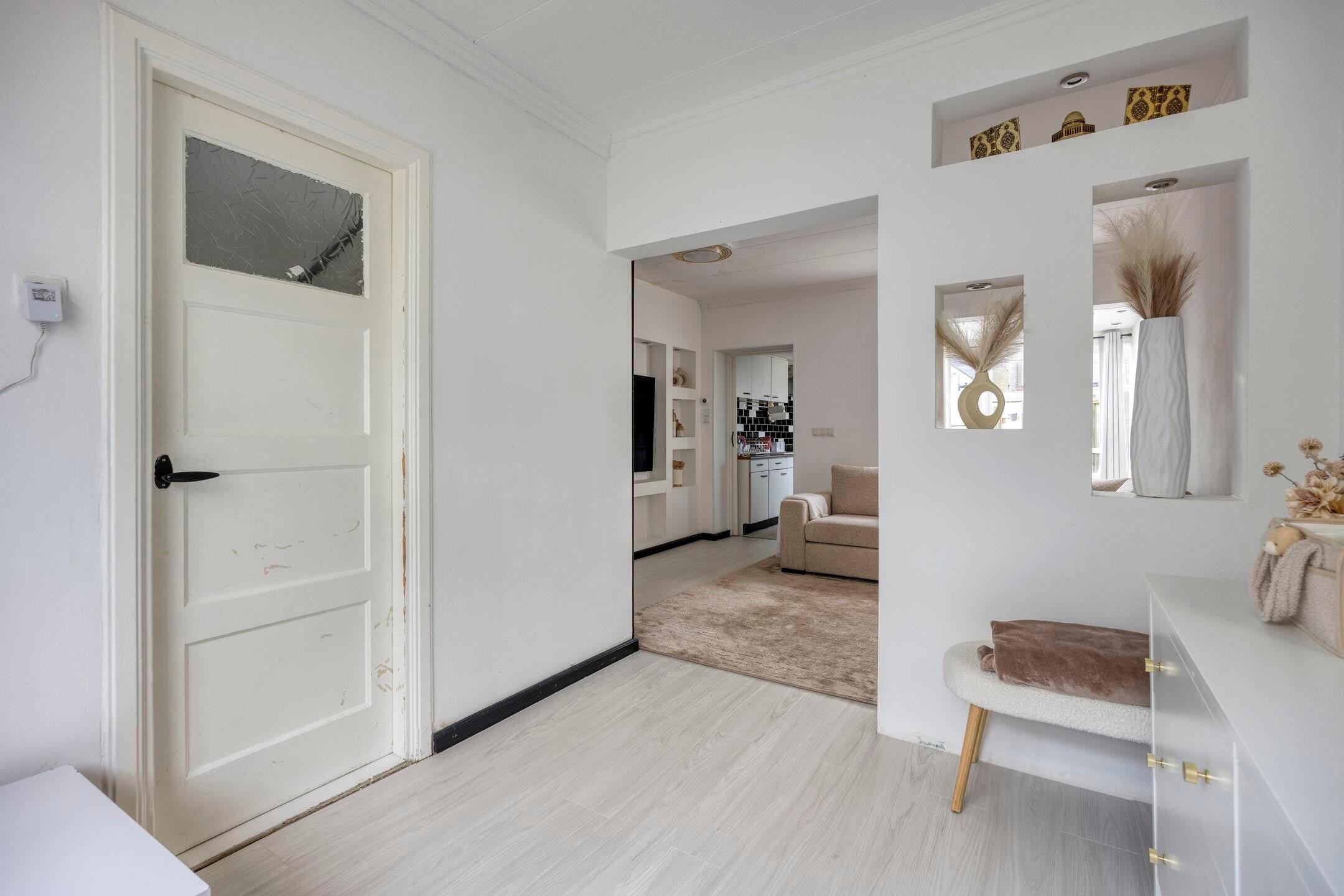 Via de entree en hal met meterkast en trapopgang bereikt u de woonkamer aan de voorzijde van de woning. De woonkamer heeft prettig zicht op de rustige straat met karakteristieke gevels.