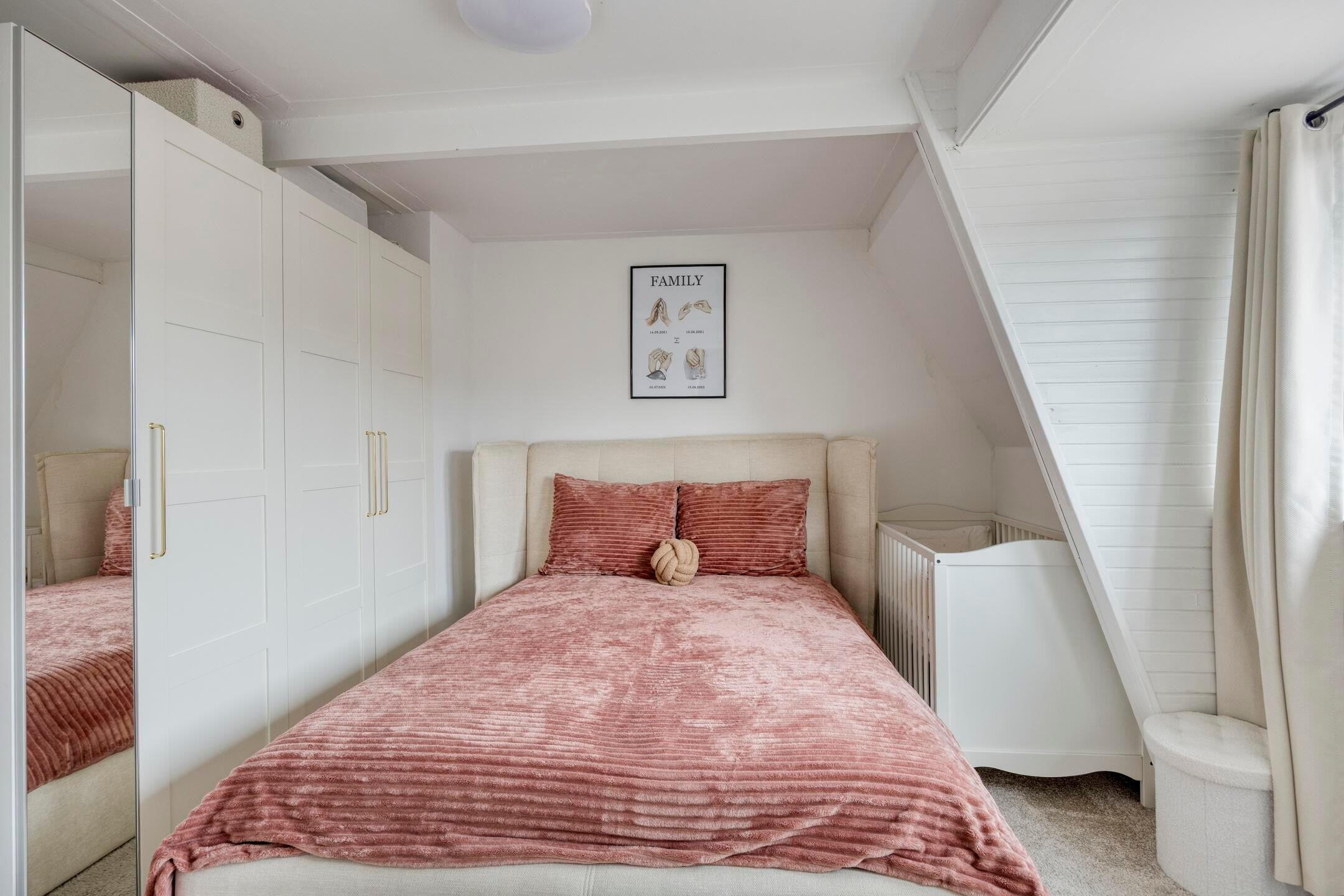 Via de trap bereikt u de eerste verdieping. Hier bevinden zich twee slaapkamers. De gehele verdieping is voorzien van kunststof kozijnen, wat zorgt voor beperkt onderhoud.